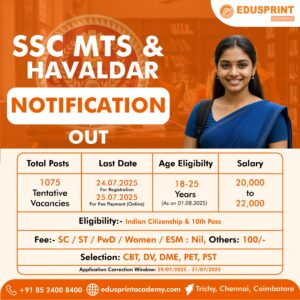 The Staff Selection Commission (SSC) has released the SSC MTS 2025 Notification on 26th June 2025 to recruit candidates for Multi-Tasking (Non-Technical) Staff and Havaldar